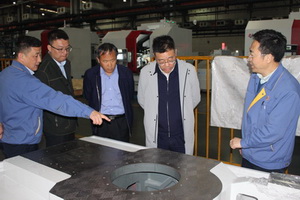 尹仁华总经理首先陪同客人来到生产车间,先后参观了装配现场和机加工现场,实地了解公司现有产品的生产和产出过程。随后,由公司副总经理兼总工程师吕